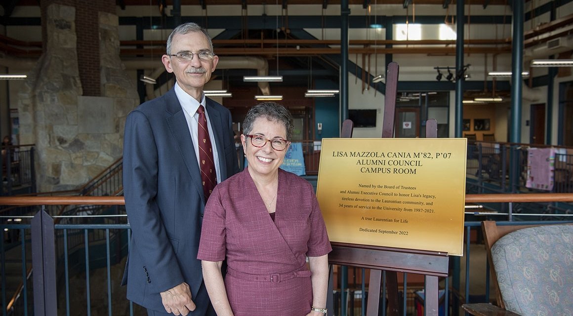 Canton, NY (09/21/2022) — "Laurentian for Life" Lisa Mazzola Cania was honored on Sept. 10 with the rededication of the Alumni Council Campus Room, on the third floor of the Sullivan Student Center, in her name.